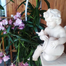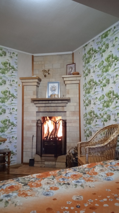 Шикарный номер с действующим камином и видовым эркером и летней террасой для двоих находится на первом этаже. В номере большая 1.60-2.00 двухспальная кровать с ортопедическим матрацом. Телевидение цифровое! Есть зона отдыха в номере - видовой эркер с панорамными окнами,мебель из лозы,вид на море и в зелёный двор.