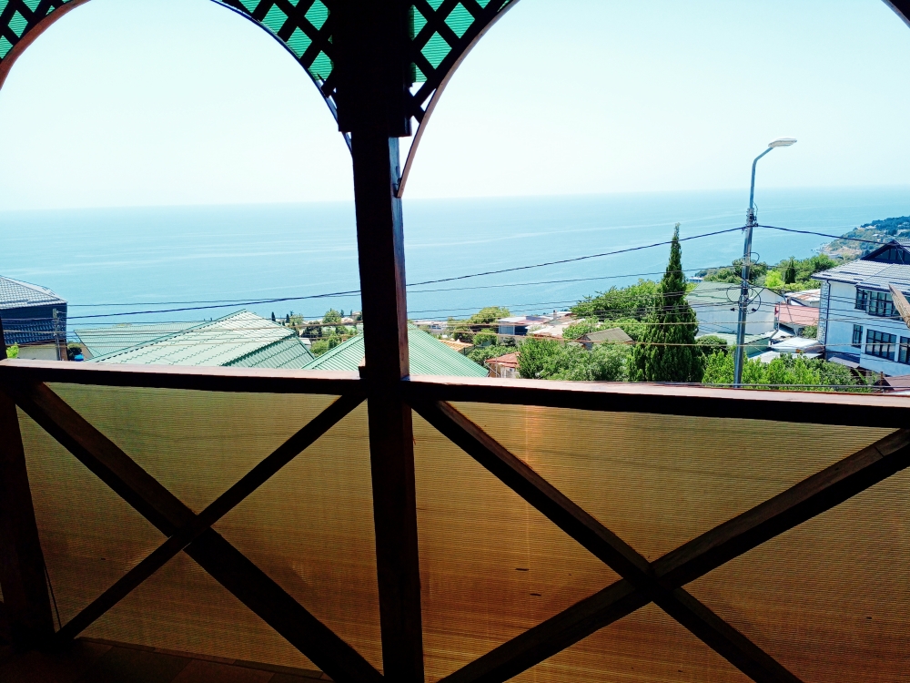 Видовой номер на втором этаже,солнечный,уютный с диван кроватью 1.40-2.00 с ортопедическим матрацом топпером. Телевидение цифровое. Кухонная зона на террасе,электролита,посуда. Мойка расположена в номере