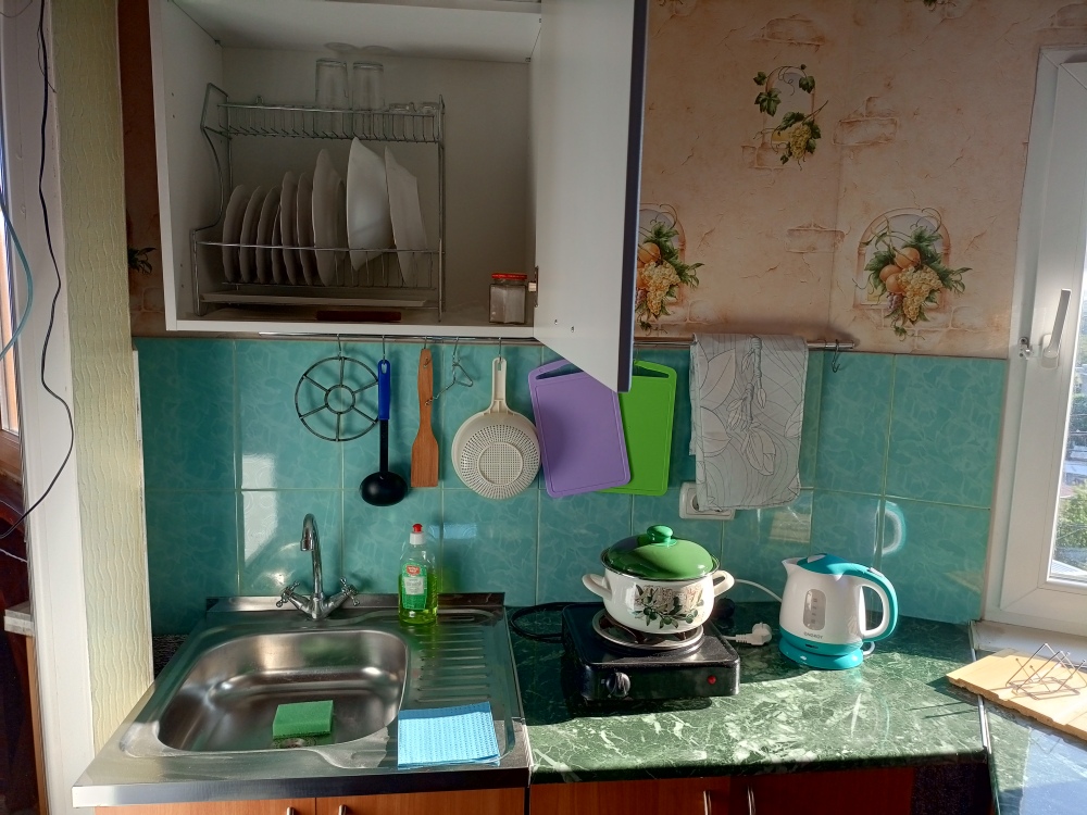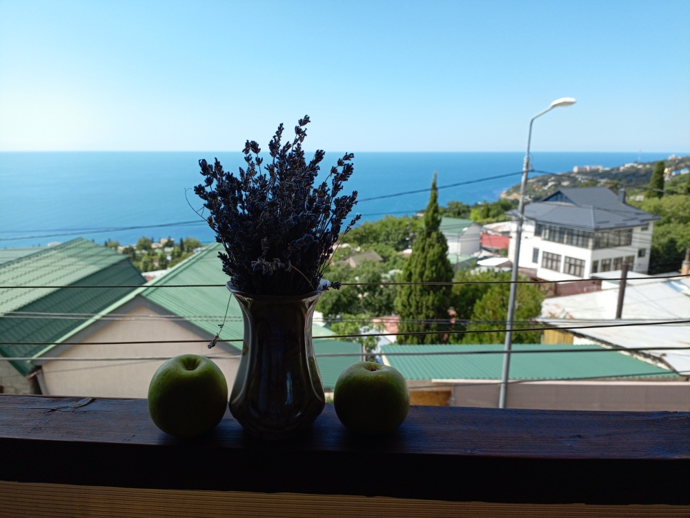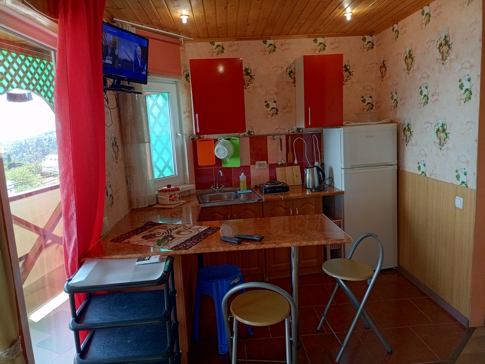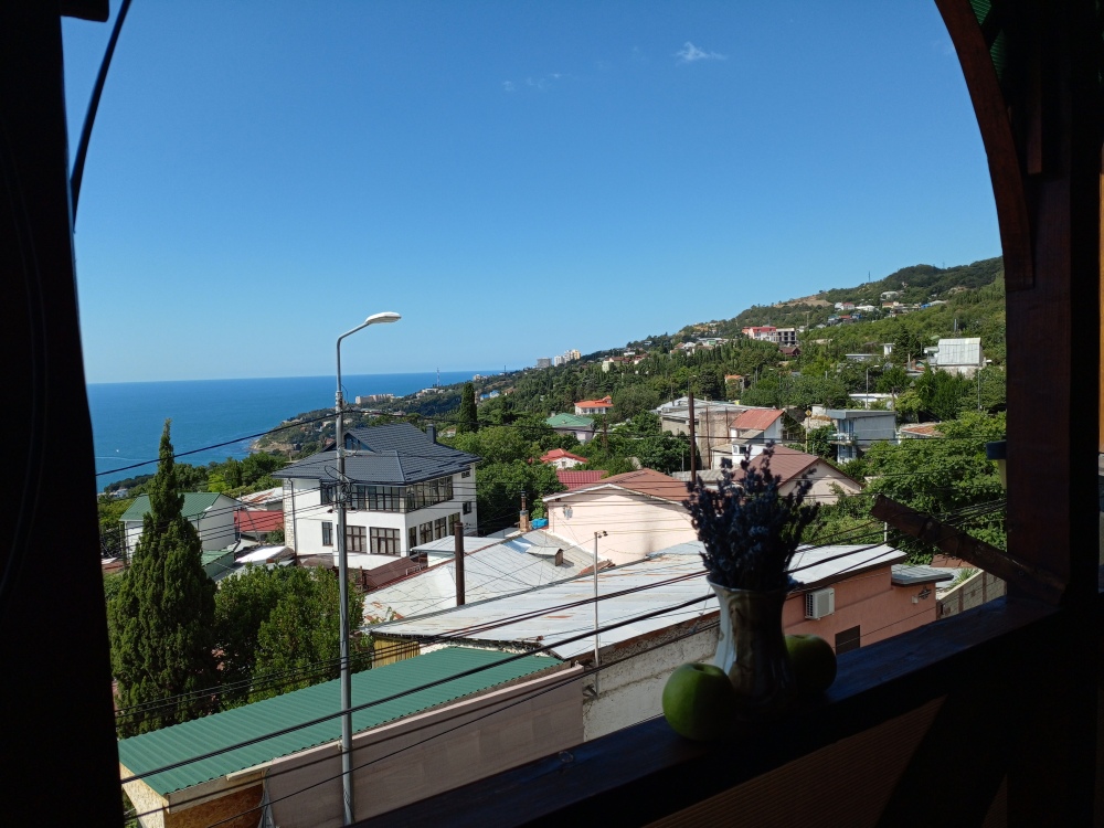 Уютный,солнечный,просторный,видовой номер на втором этаже частного двухэтажного дома. Номер студия,есть кухонная зона,своя посуда,бытовых электроприборы. Есть микроволновая печь в доступном месте при необходимости для пользования. Телевидение цифровое. Фен предоставляется по запросу гостя.
