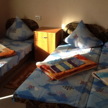 Уютный прохладный номер. На первом этаже находится три трехместных номера (возможно размещение по 2 человека) и общая кухня со всем необходимым для приготовления пищи, микроволновка.