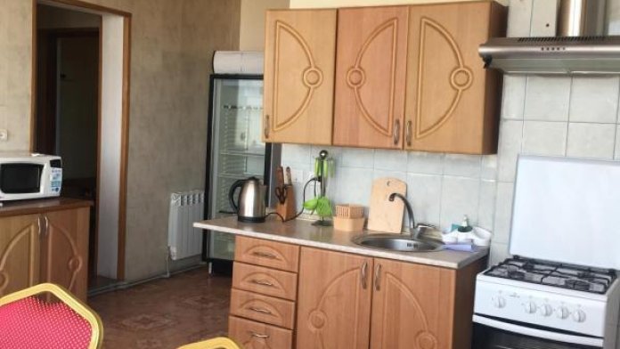 Двухкомнатный люкс включает в себя 2 раздельные комнаты с общей большой кухней и ванной комнатой. Каждая комната расчитана на 3 человек, вообщем номер на 6 человек , например компания. В номере вся необходимая мебель, кровати, шкаф, тумбы, кондиционер, Wi-Fi также имеются. Кухня оборудована всей посудой, газовая плита, холодильник. Большая обеденная зона. Ванная комната содержит все необходимое, также выдаются полотенца на каждого человека.