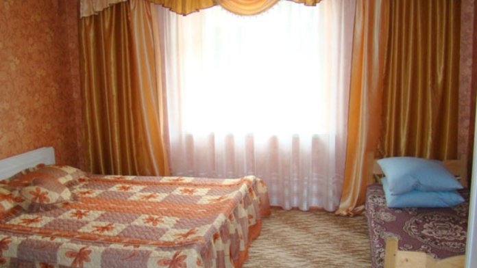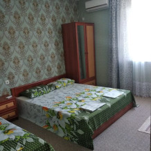 Трехместный номер эконом-класса, включает в себя спальную мебель (двухспальная кровать, одна односпальная кровать, шифоньер,тумбочки, комод), вентилятор.