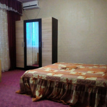Четырехместный номер эконом-класса, включает в себя спальную мебель (двухспальная кровать, одна односпальная кровать, шифоньер,тумбочки, комод), вентилятор.
