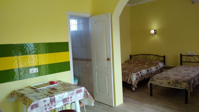 В номерах есть: душ, туалет, кровать 160 см с хорошим матрасом и кровать 80 см, телевизор, интернет Wi Fi, чистое постельное белье, шкаф для одежды и прочая мебель, возле номера беседочка с садовой мебелью (стол, стулья).