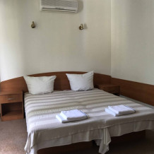 20 двухместных и 20 трехместных номеров, в каждом из которых имеется кондиционер, санузел с душем, раковиной и унитазом, полотенцами и средствами индивидуальной гигиены, холодная и горячая вода подается круглосуточно. А также Wi-Fi и ТВ с общественными каналами, холодильник и чайник с сервизом, из окон вид во двор и на бассейн.