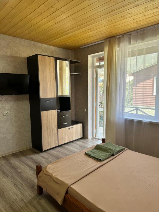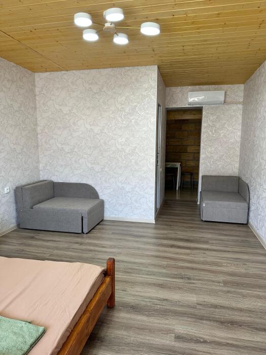 4-х местные номера оснащенные кондиционером, гостиной зоной, телевизором, холодильником, Wi-Fi, ванной комнатой с душем и собственной кухней укомплектованная всеми кухонными принадлежностями.