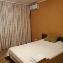 Номер комфорт плюс с балконом и санузлом. Номер 20 кв.м., евроремонт, светлый, просторный. На балконе есть столик со стульчиками. В номере интернет, телевизор, спутниковое тв, шкаф, двухспальная кровать. Кухня общая на 3 номера.