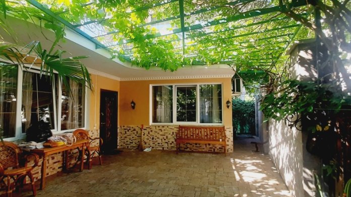 Дом с закрытым индивидуальным двориком. На первом этаже расположена кухня и санузел с душем, одна из спален, а на втором: холл, вторая спальня с выходом на террасу. По спальным местам: две двуспальные кровати и диван. Размещение до 6 человек. Возможно использование электрошашлычницы или электромангала, что именно будет, укажу позже. Все удобства: кондиционера, плазменные ТВ. СВЧ-печь и газовая плита с духовкой, интернет беспроводной.