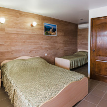 Все номера имеют террасу с видом на море и внутренний дворик. Все номера с удобствами: душ, туалет, горячая вода, интернет, ТВ-Т2, кондиционеры. Кроме этого у каждого номера на 1-м этаже имеется своя отдельная терраса ,где уютно расположен столик и удобные садовые кресла.
