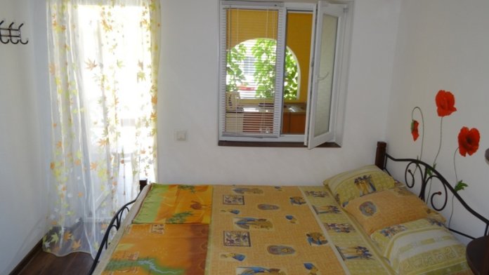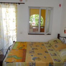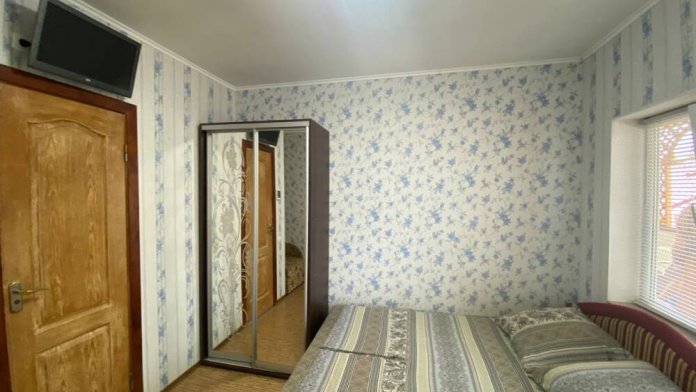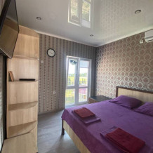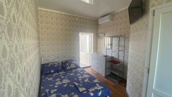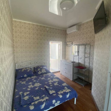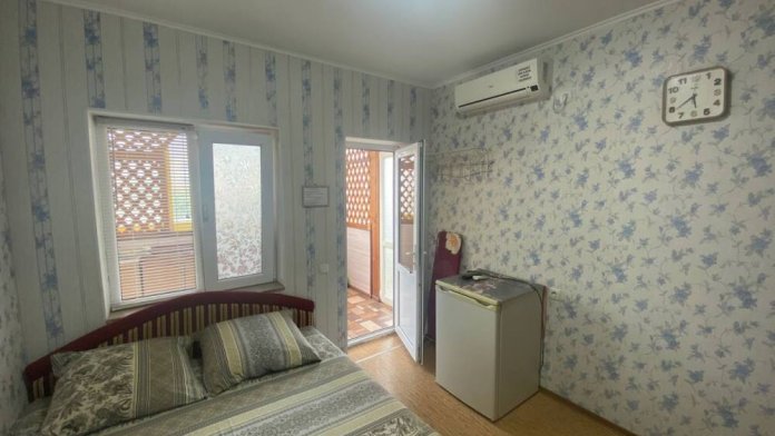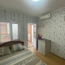 Номер находится на первом этаже. Вход в номер- автономный. Имеется своя своя автономная кухня (на свежем воздухе) со всеми кухонными принадлежностями: посуда, электроплита (одноконфорочная), электрочайник, стол, стулья, холодильник. Площадь номера 12 кв.м. + кухня 6 кв.м.