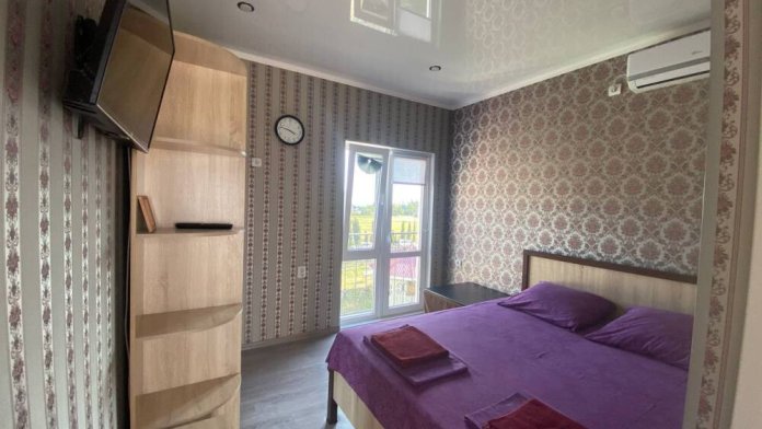 В номере: двуспальная кровать, кресло-кровать, цветной телевизор (спутниковое ТВ), кондиционер (сплит-система), утюг, гладильная доска, фен, шкаф, тумбочки, евроокна с москитной сеткой.