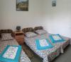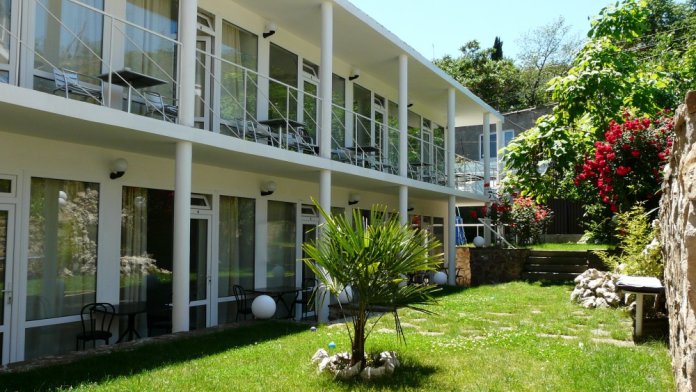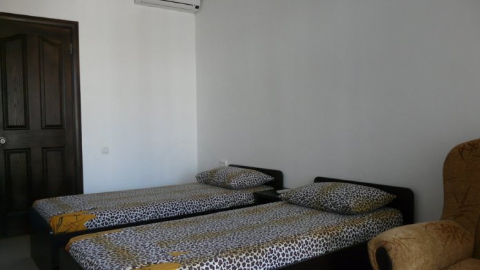 Наш гостевой дом представляет собой двухэтажное здание, на первом этаже которого находятся 5 номеров и большая летняя кухня со всем необходимым (газовый балллон, микроволновая печь, разделочные столы), а на втором этаже есть 6 номеров с общим балконом. Окна во всех номерах выходят во двор. Территория нашего гостевого дома обширна и комфортна для отдыха. Здесь Вы найдете детскую площадку, фонтан, место для барбекю, большой каркасный бассейн для детей и взрослых.