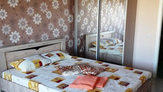 В номере двухспальная кровать с ортопедическим матрасом, диван-кровать, шкаф, холодильник, телевизор, кондиционер.
