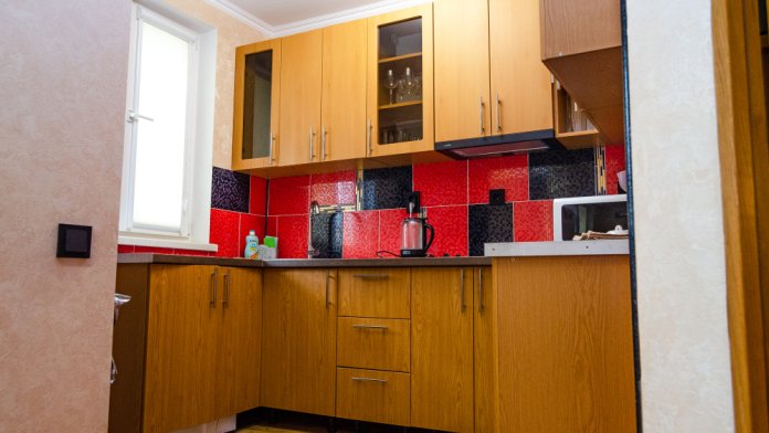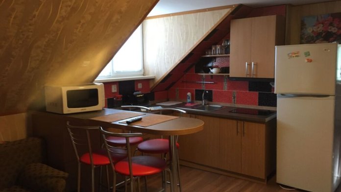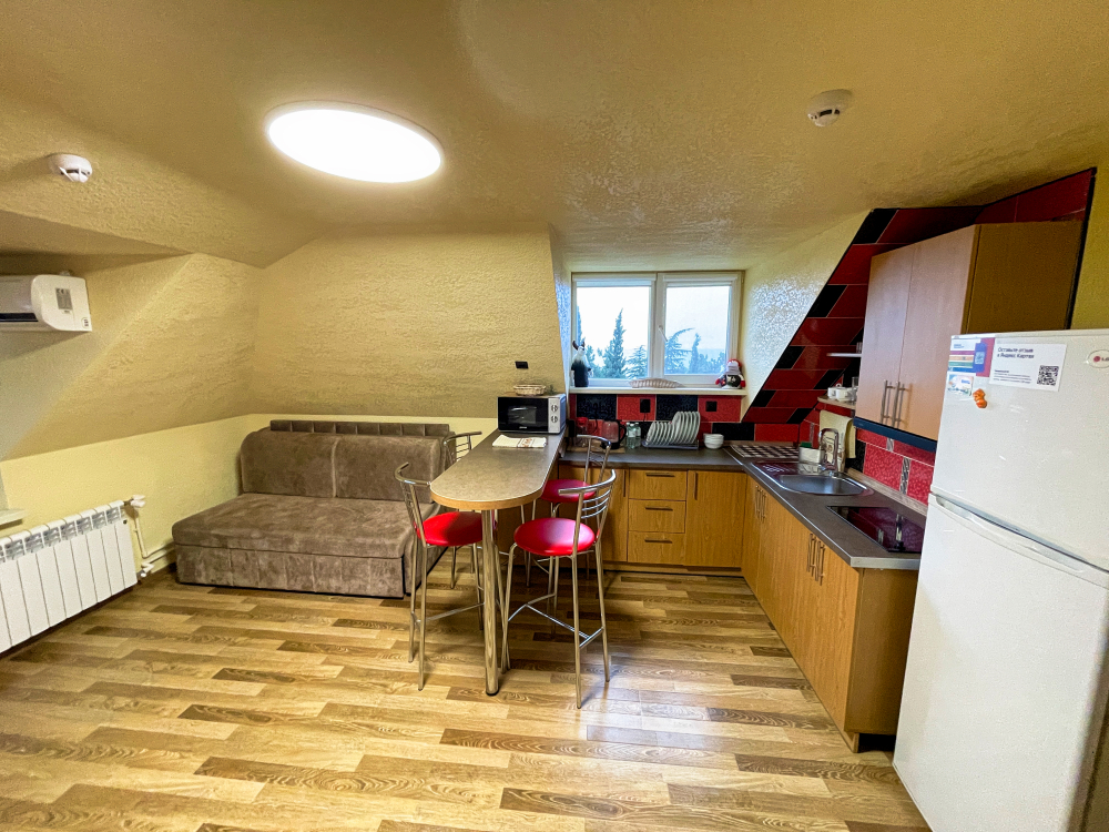 2 балкона. Студия, совмещенная с кухней и спальня. Плита стеклокерамика. Вся необходимая посуда.
