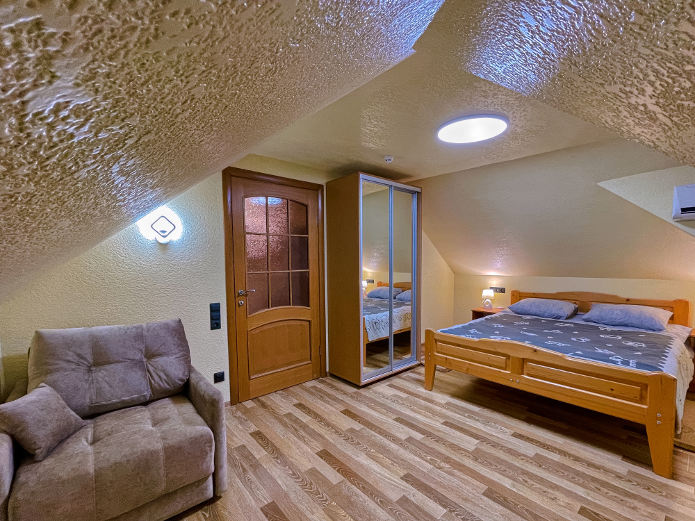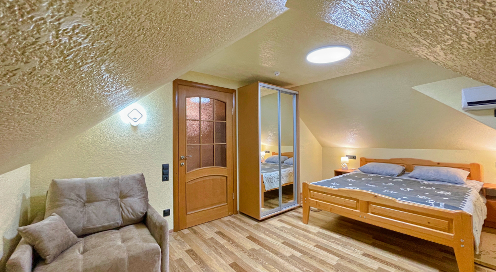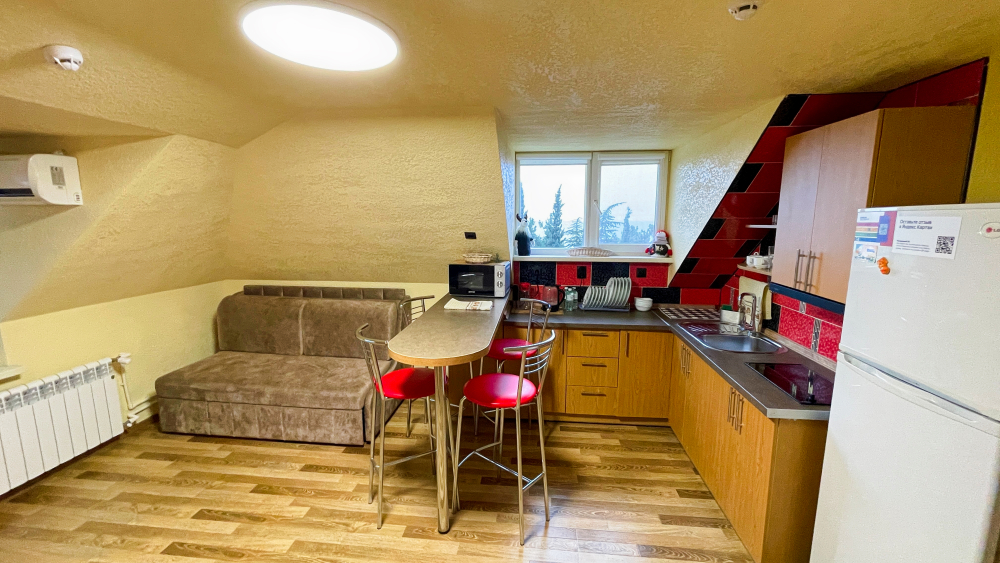 Свой двор с местом для машин, беседки, мангал-барбекю. Шикарный вид на Новосветскую бухту и горы. Номера оборудованы всем необходимым, (в каждом номере кабельное телевидение, WI-FI, сейф, кондиционер.) В зимний период номера отапливаются от собственной котельной. Холодная, горячая вода постоянно.