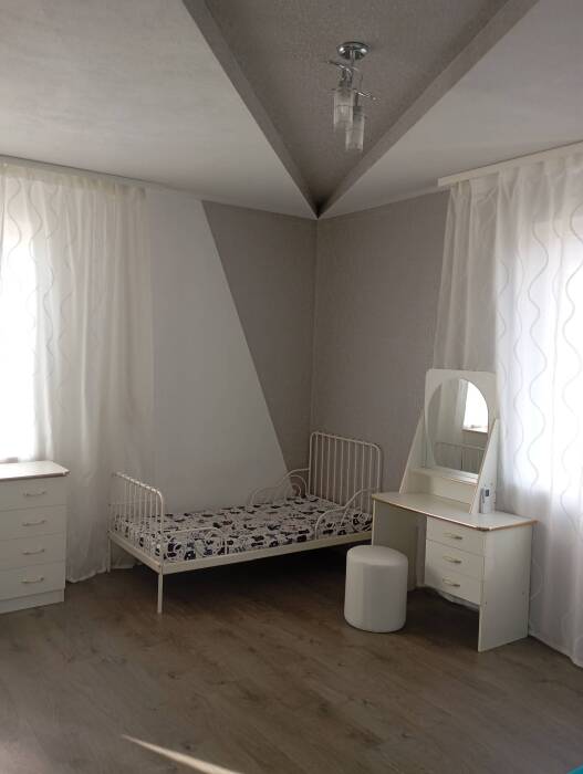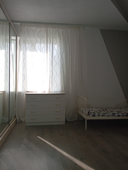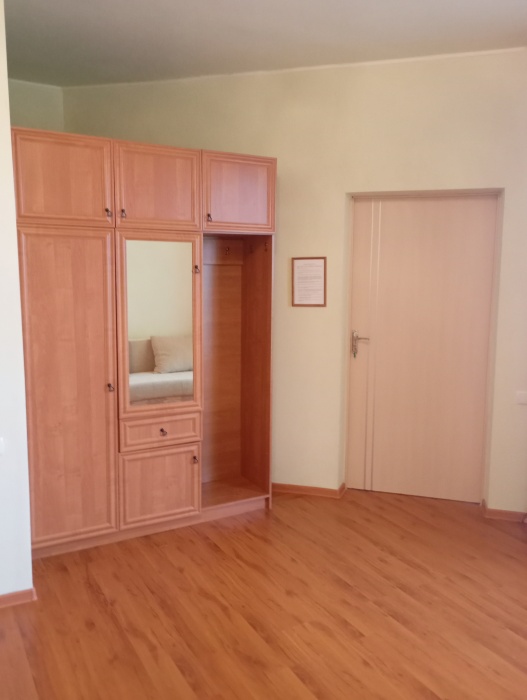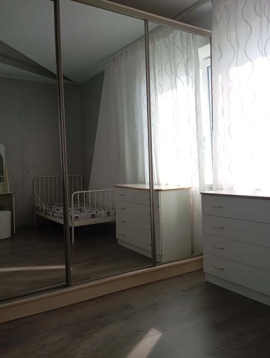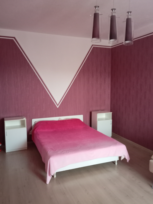 Просторная четырехместная комната. В комнате выполнен качественный дизайнерский ремонт. Комната оборудована всей необходимой мебелью (шкаф, двуспальная кровать, диван-кровать, прикроватные тумбочки, журнальный столик, кондиционер)