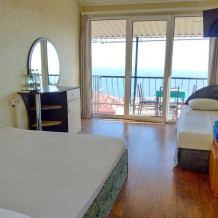Среди удобств в каждом номере есть кондиционер, телевизор, балкон и терраса. Номера делятся на Стандарт и Комфорт. Номера Комфорт имеют в каждом номере собственную кухню и ванную комнату и рассчитаны на 3 гостей. Номера Стандарт имеют общую кухню и ванную комнату на 3 номера. Обеденная зона укомплектована холодильником, посудой и электрическим чайником. В собственной ванной комнате с душем предоставляются бесплатные туалетно-косметические принадлежности. Из окон открывается потрясающий вид на море и горы (Аю-Даг как на ладони). Каждый номер оборудован телевизором с плоским экраном. Уборка номера производится каждые 5 дней.