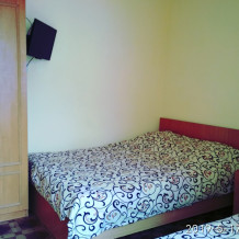 Не большая двухместная комната на втором этаже. Вутри душ,туалет,телевизор,холодильник,кондиционер.Кухня общая.