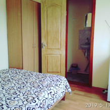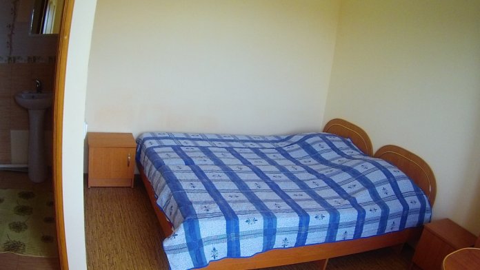 Двухместная комната на третьем этаже. Внутри душ,туалет,телевизор,холодильник,кондиционер. Балкон со столиком ,Хороший вод на горы. Не большая кухя на этаже на две комнаты.