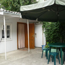 Двухкомнатный номер расположен на первом этаже одноэтажного домика. Перед входом имеется отдельный дворик с местом для отдыха. В доме кухня, столовая зона, туалет и душ. Две отдельные комнаты соеденные общим коридором. Кондиционер, телевизоры, шкаф.
