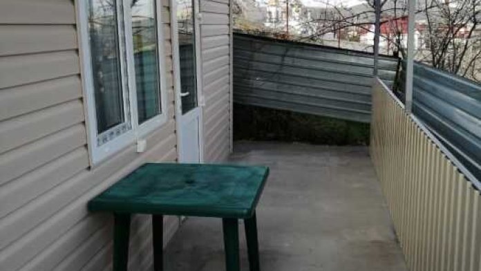Номер находится в отдельном домике. С площадки возле номера открывается вид на море и горы. В номере три односпальные кровати шириной 80 см. Две из них совмещены, получается двухспальная кровать без промежутка. Пред номером установлен столик для отдыха. В номере кондиционер, телевизор, холодильник, тумбочки, шкаф, посуда, туалет и душ.