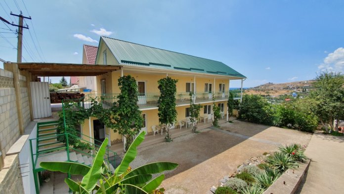На территории есть бесплатная стоянка для авто, кухня для самостоятельного приготовления и столовая в которой, есть мангал, тапчаны, площадка для детей с качелями, круглосуточно горячая и холодная вода, и интернет (Wi-Fi). Со двора открывается живописный вид на море, гору «Демерджи», на леса и на весь поселок.