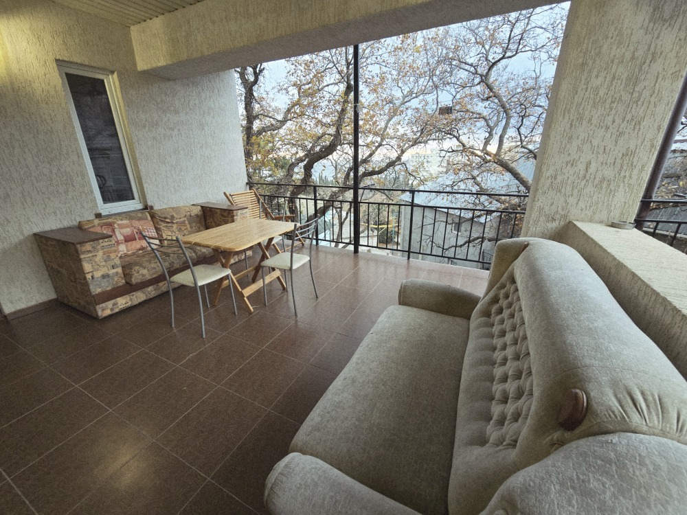 В частном тихом секторе сдаётся для большой семьи или компании два номера с террасой и балконом на 3 этаже и общей кухней на эти два номера с видом на Ай-Петри и море.