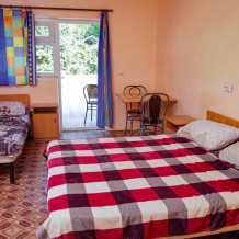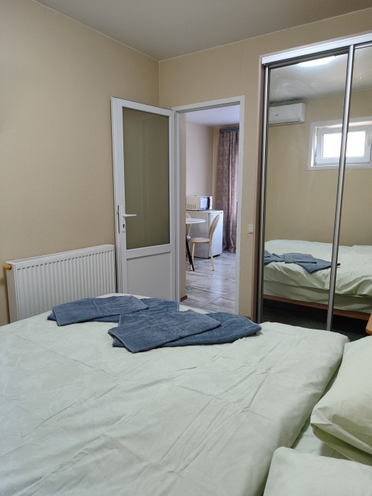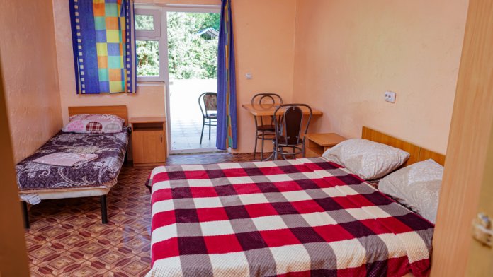В каждом номере размещение 4 гостей ,в домиках 6 гостей.