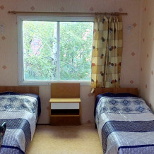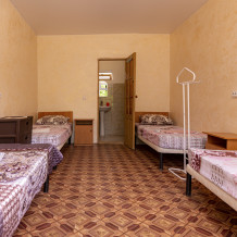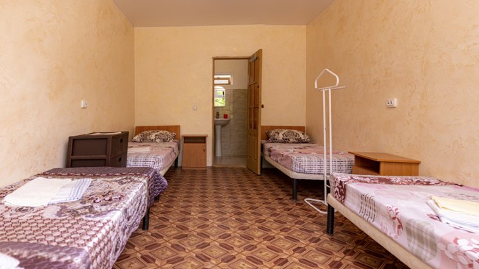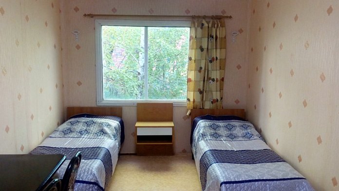 Номера оснащены индивидуальным санузлом с круглосуточной подачей холодной и горячей воды, кроватями с ортопедическими матрацами, тумбочками, столами, стульями, шкафам ,питание под заказ .