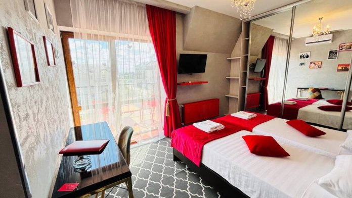 Дизайн интерьера, выдержанный в эксклюзивном и уникальном стиле , поражает своей продуманностью до мелочей. Представьте: стены, украшенные ручной росписью с изображением задуманной тематики. Эксклюзивные предметы интерьера, подчеркивают утонченный вкус. Расслабьтесь на мягкой итальянской мебели , окунитесь в тишину благодаря плотным блэкаут шторам, и ощутите мягкость роскошного коврового покрытия под ногами.Люкс номера обустроены балконами с удобной мебелью на двоих, откуда открывается вид на один из лучших, сияющих десятками цветов, бассейн в Крыму.