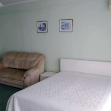 Номера имеют полностью оборудованную кухню (16 кв.м.), где есть все необходимое для готовки, две спальни (18 кв.м. и 6 кв.м.), холл (25 кв.м.), балкон с видом на море, TV, кондиционер, 2 санузла, со стороны гор оборудованная площадка для отдыха. Вместимость - 4 взрослых + 2 дополнительных места, не более 6 чел. в номере.