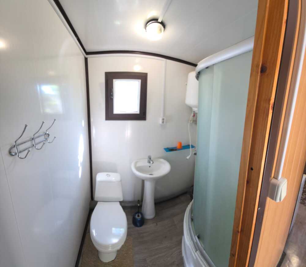 Возле входа имеется терраса, на которой стол со стульями для отдыха и приема пищи на воздухе и зонтик от солнца.