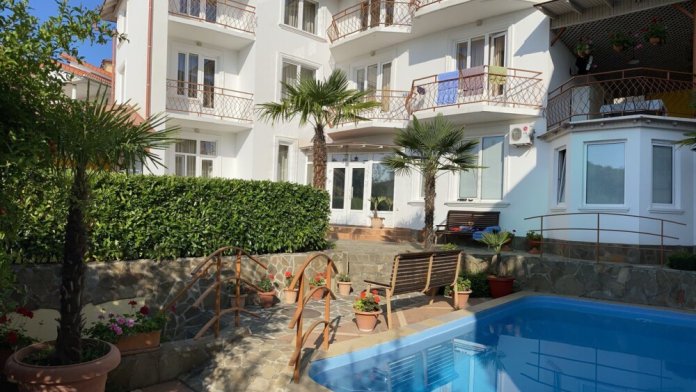 Гостевой дом «Илона» расположен в тихом месте в пятнадцати минутах ходьбы от моря. Утопающая в зелени закрытая территория идеально подходит для семейного отдыха. На территории для Вас расположен открытий бассейн, с прилегающей площадкой для отдыха в тени крымского граната, лужайка для детских игр. Две террасы, одна из которых расположена на втором этаже и располагает к более спокойному отдыху. Террасы оборудованы холодильниками, микроволновыми печками, мультиварками, чайниками, посудой, а также телевизорами, для любителей посмотреть телевизионные передачи на свежем воздухе.