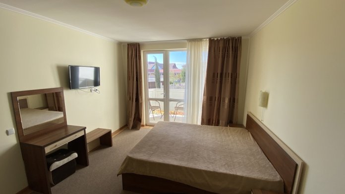 - один двухместный номер с балконом, площадь – 25 м.кв., расположен на втором этаже, Спальные места – кровать двуспальная (1,6 х 2,0 м.).