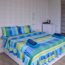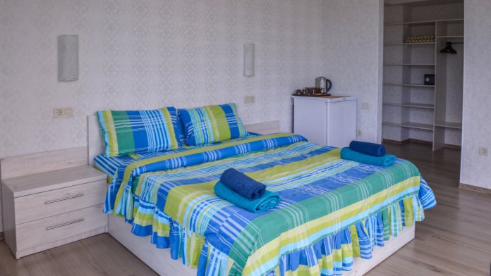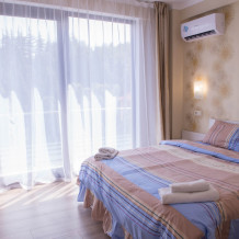 Мы подумали о всех мелочах - в номерах есть все необходимое: кондиционер, сейф, телевизор, холодильник, электрочайник, посуда, фен, постельное белье высокого качества, полотенца банные, полотенца для пляжа, шампунь, гель для душа и мыло. Номера уютные и светлые, витражное окно и французский балкон даст возможность насладиться видами Алушты, все номера с видом на море, а вокруг отеля много зелени. Во всех номерах теплые полы, поэтому Ваш отдых будет комфортным круглый год!