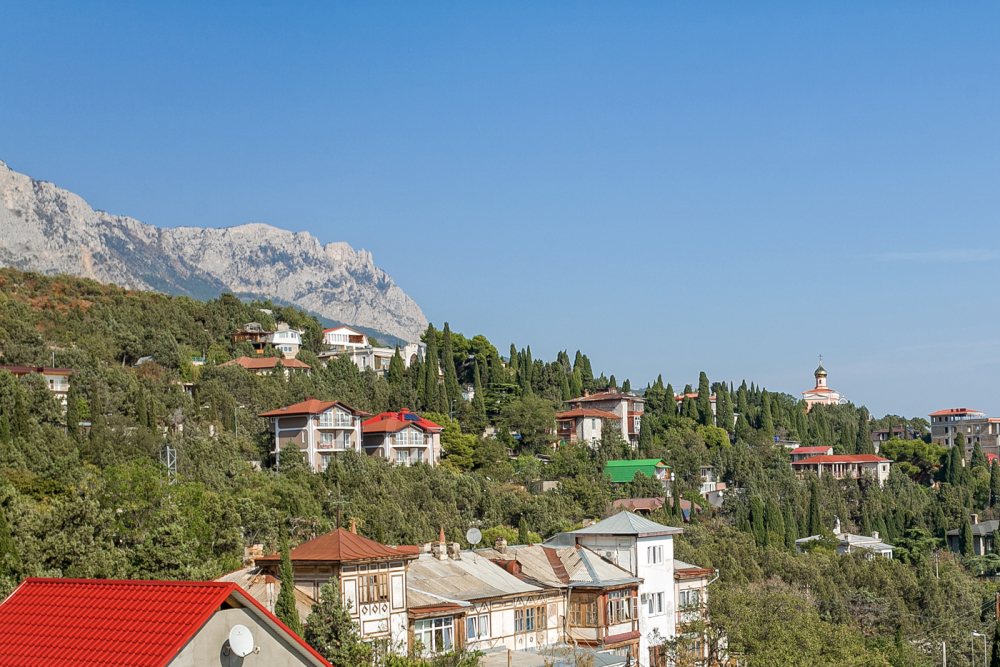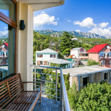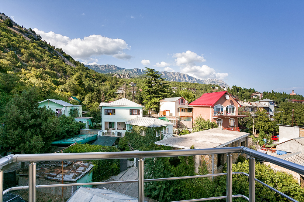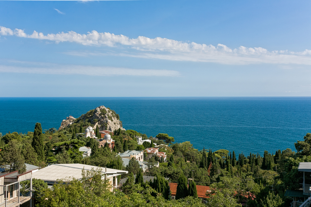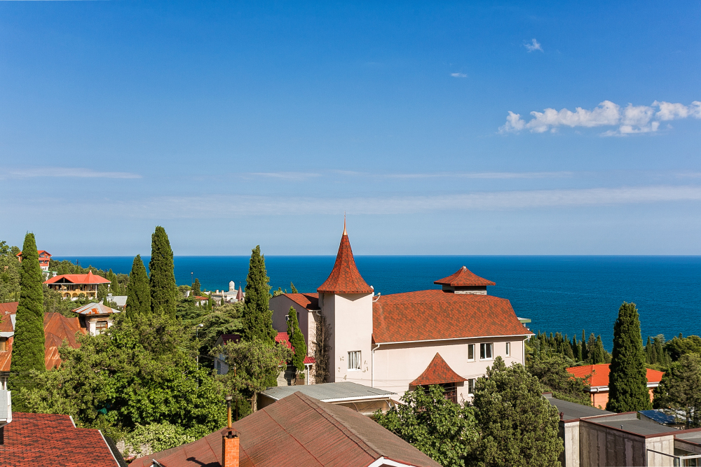 Со всех квартир открывается завораживающий вид на вечно зеленые кипарисы и кедры, синее море, горы Ай-Петри, Кошка, скалу Дива и Монах.