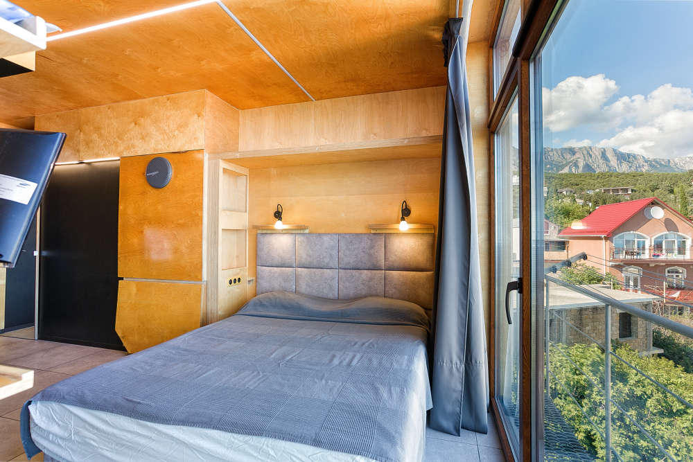 дизайнерская студия из стильной фанеры, на 4 полноценных спальных места .Французский балкон, витражные окна .Все необходимое для комфортного отдыха есть .Вид на море .Дом находится под горой Кошка, до знаменитой кипарисовой аллеи 5 минут. К морю на пляж Дива спускаться 10-15 минут Самые красивые пляжи и море в Симеизе .это «Крымские Мальдивы» Красивейшие пейзажи ,скала Дива, гора Кошка, скалы Пандеа, Крыло Лебедя,, реликтовый парк, ,романтический парк, детские площадки, кафе, магазины ,рынок, банк все в пешей доступности. Приезжайте! Наслаждайтесь .Принимаем круглый год.