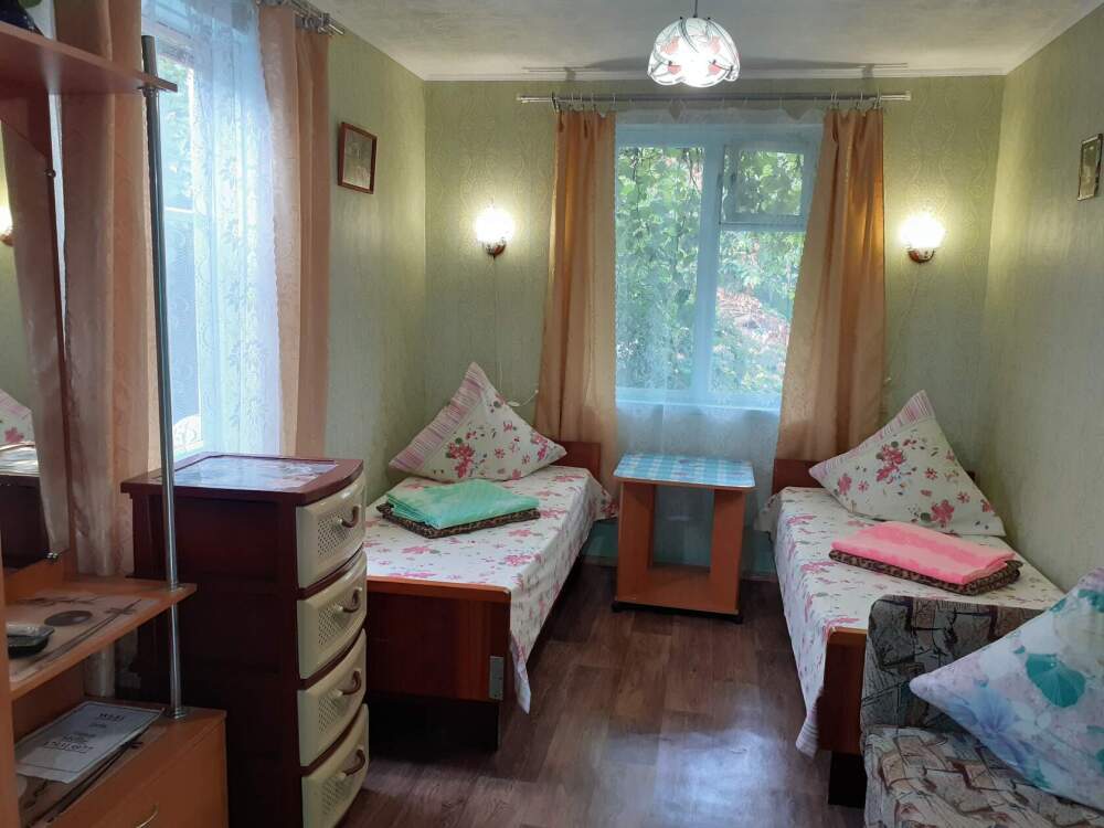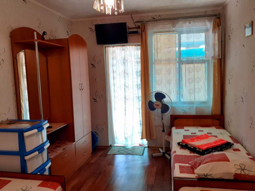Мебелированный трёх местный номер, телевизор, полуторные кровати, шкаф, камод. Кухня общая на три номера, газовая плита, два больших холодильника, для каждого номера отдельный комплект посуды. В этом доме два туалета и душ общие. Чистота и порядок санузла гарантированно. Большой затенённых двор.