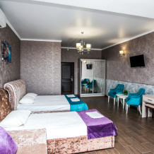 Гостям предлагается проживание в 2,3 и 4-местных номерах со всеми удобствами и собственными балконами с местами для отдыха. Есть двухкомнатные номера. Большинство номеров с видом на море.