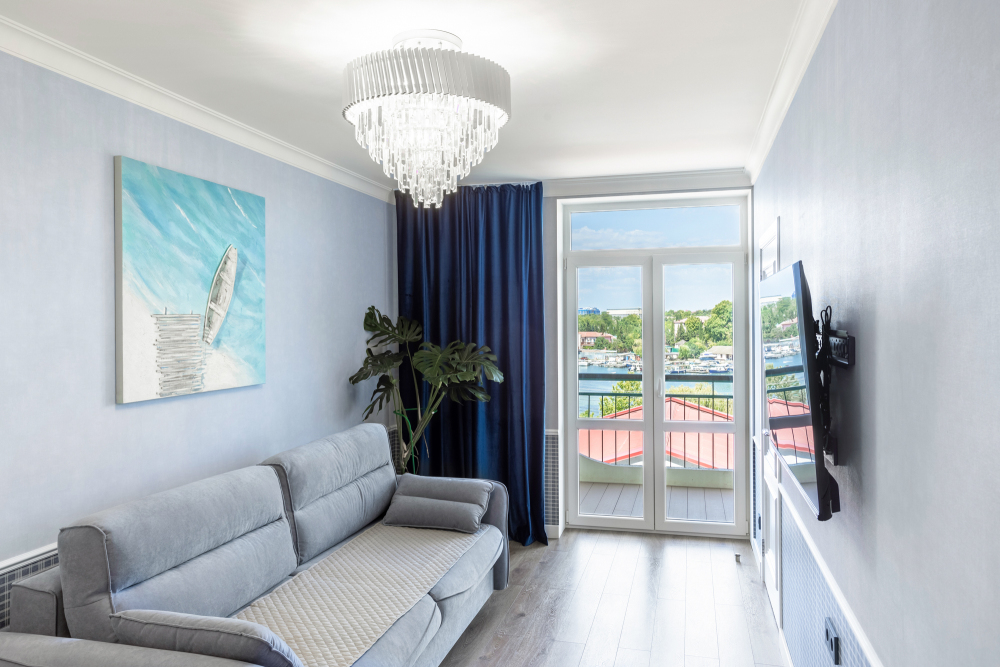 Двухкомнатные апартаменты со спальней и великолепным видом на море и бухту Омега. Вид с балкона позволит насладиться свежим морским воздухом, также можно наблюдать за красивыми Крымскими рассветами или провести романтический вечер на фоне неповторимого заката.