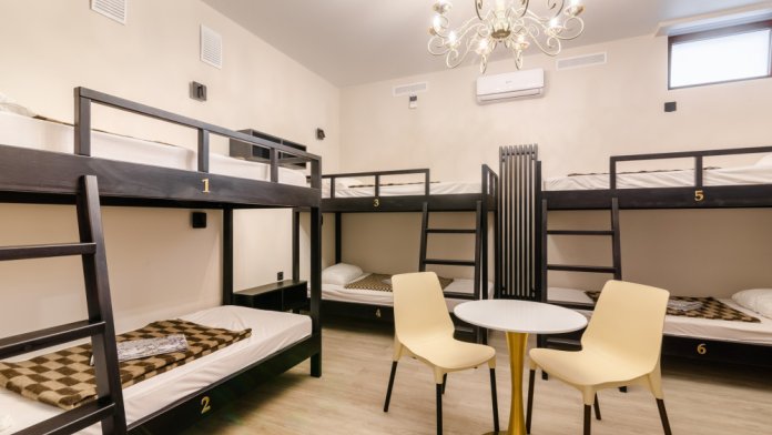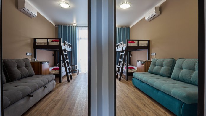 Двухкомнатный номер со всеми удобствами. Рядом общая кухня с дизайнерским ремонтом.