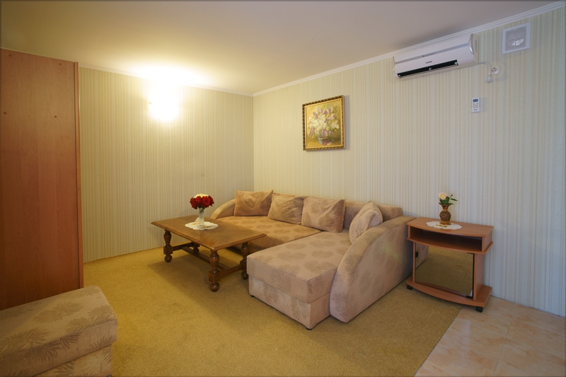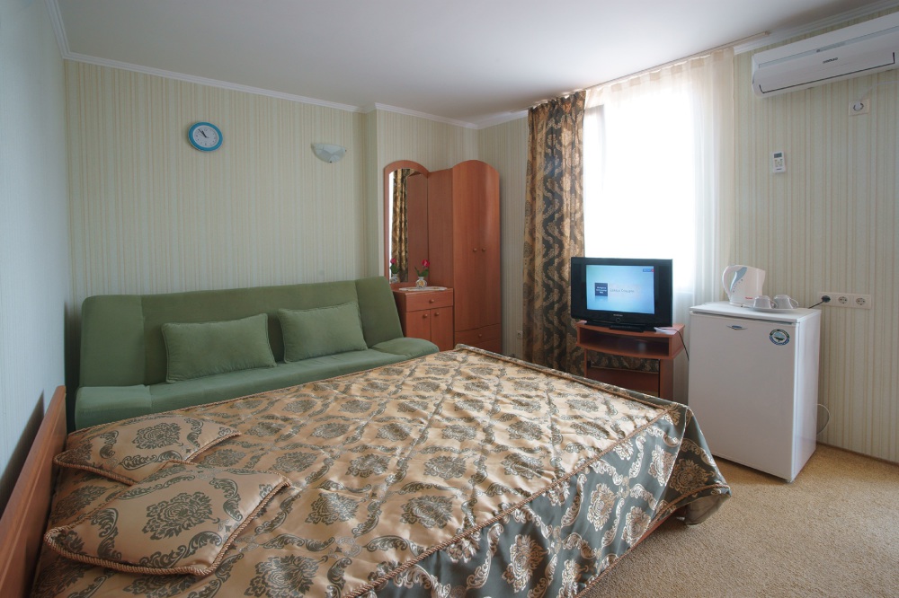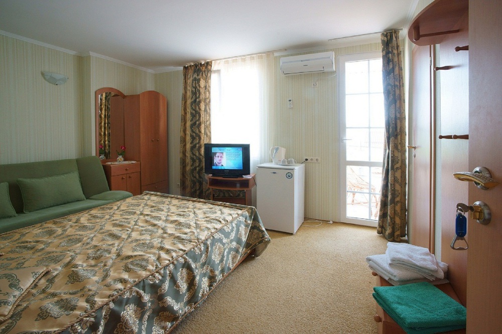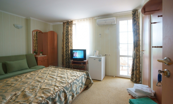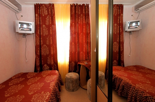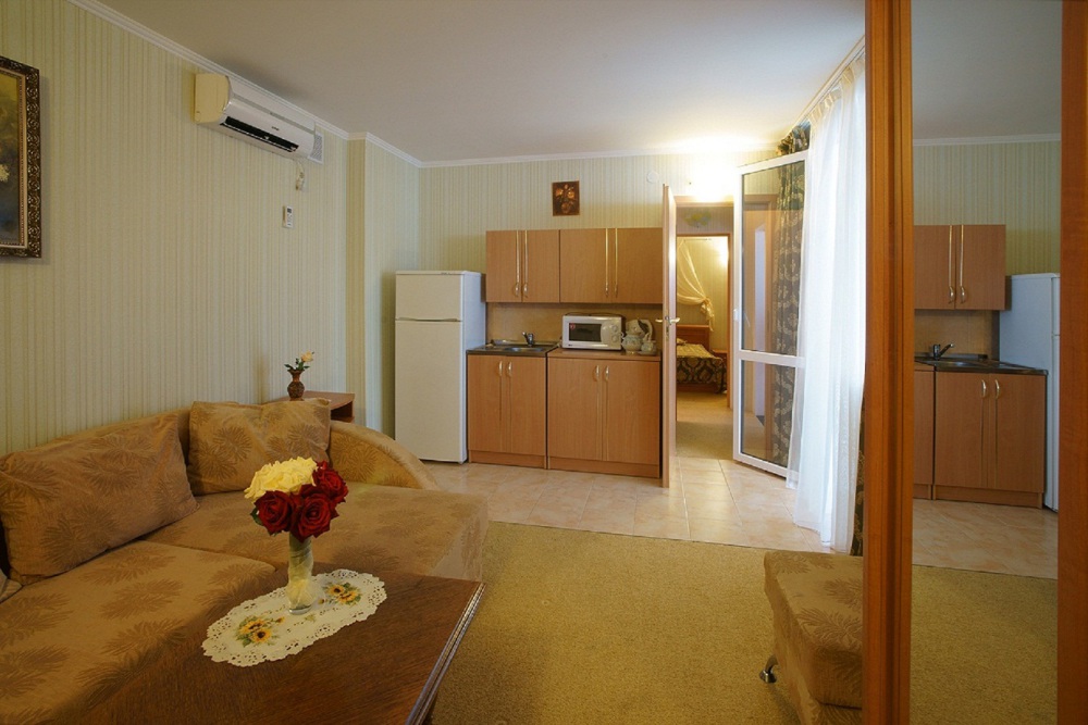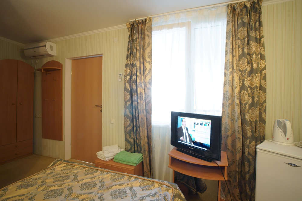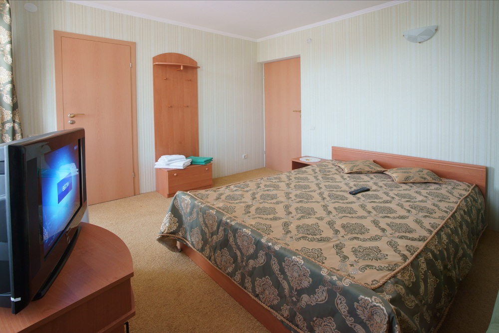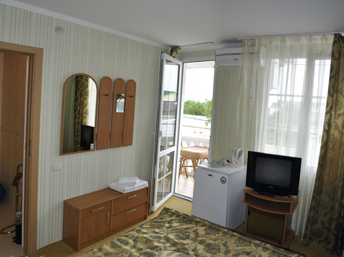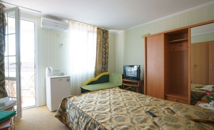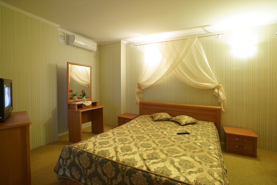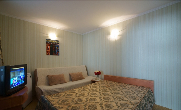 В каждом номере имеется санузел – душевая кабина, умывальник, туалет (горячая и холодная вода круглосуточно), автономное отопление (в период межсезонья), кондиционер. ТВ и холодильник, фен и электрочайник. В двухкомнатном люксе есть кухонная стенка с мойкой, набором посуды и микроволновкой. Уборка в номере, смена полотенец (3 шт.) - по требованию, смена постельного белья - каждые 8 суток. Утюг с гладильной доской на каждом этаже. На балконах есть приспособление для сушки белья. Балконы укомплектованы набором плетенной мебели. За дополнительную плату услуги: прачечной, такси, няни, сейф на стойке регистрации.