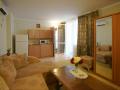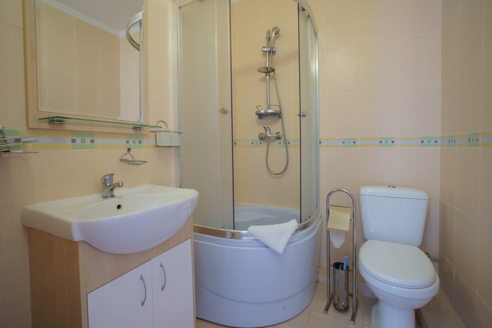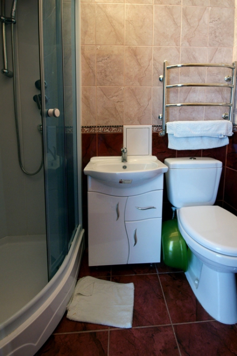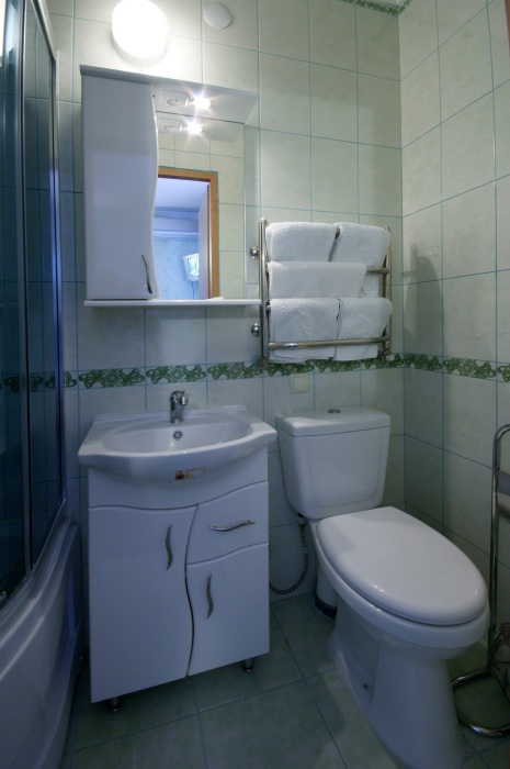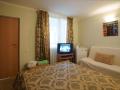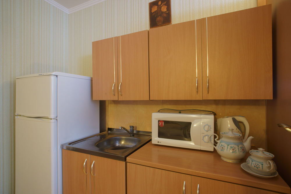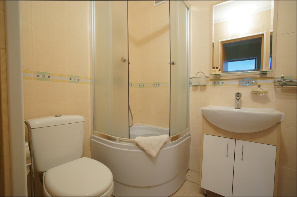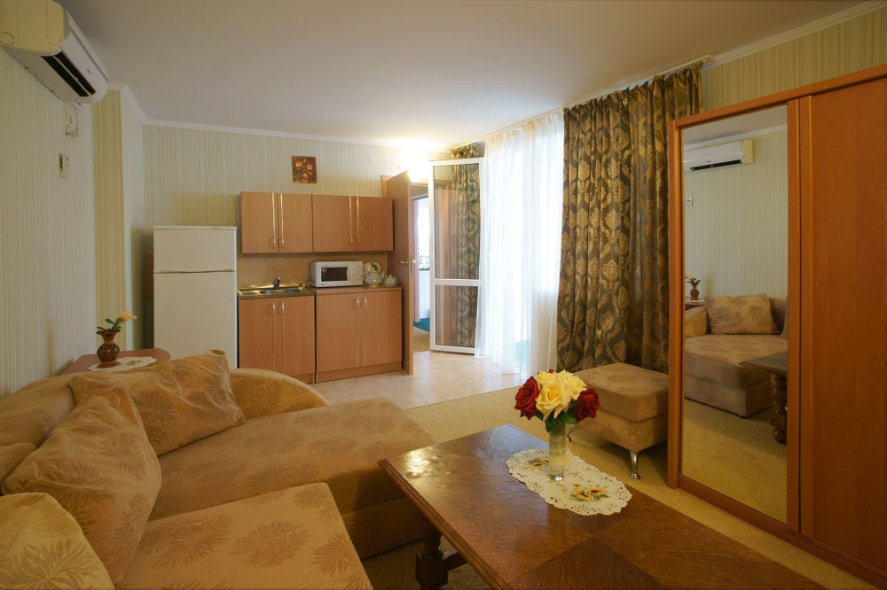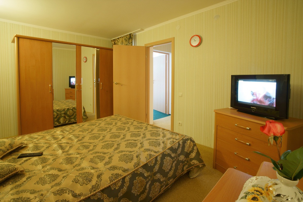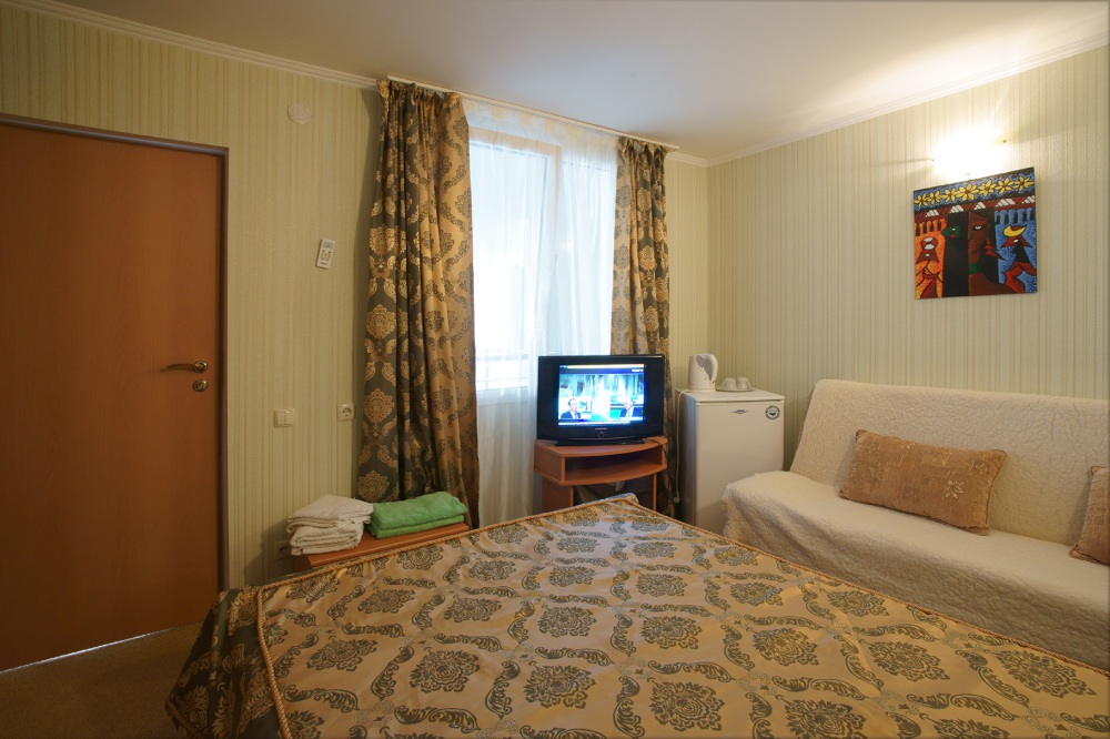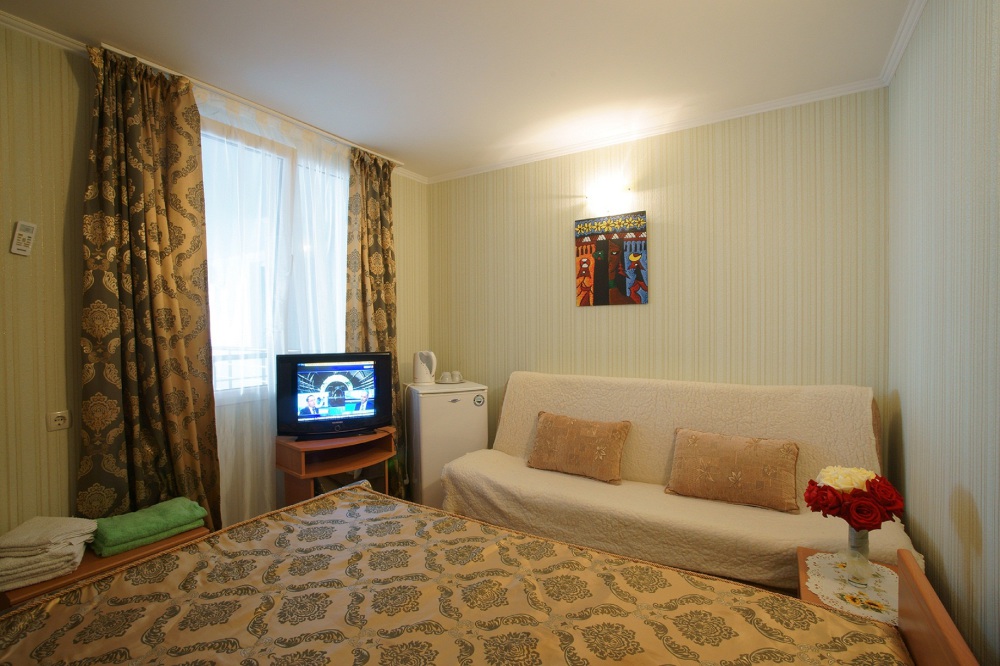 В каждом номере имеется санузел – душевая кабина, умывальник, туалет (горячая и холодная вода круглосуточно), автономное отопление (в период межсезонья), кондиционер. ТВ и холодильник, фен и электрочайник. В двухкомнатном люксе есть кухонная стенка с мойкой, набором посуды и микроволновкой. Уборка в номере, смена полотенец (3 шт.) - по требованию, смена постельного белья - каждые 8 суток. Утюг с гладильной доской на каждом этаже. На балконах есть приспособление для сушки белья. Балконы укомплектованы набором плетенной мебели. За дополнительную плату услуги: прачечной, такси, няни, сейф на стойке регистрации.