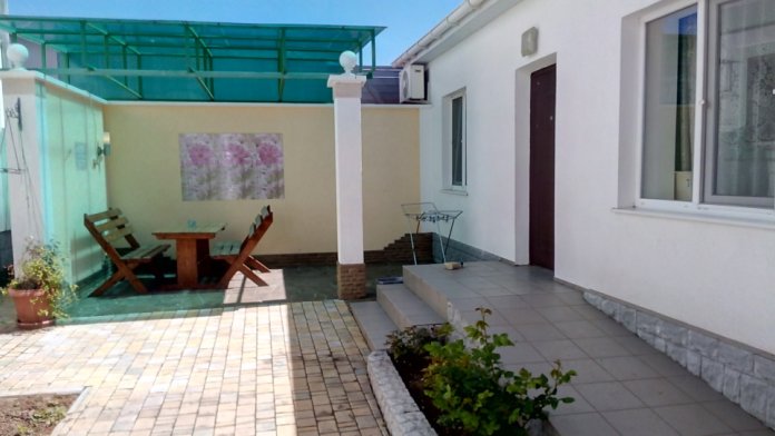 Евпатория ул Пушкина55в Дом на 4-6 человек-две комнаты, сан узел,кухня свой дворик ,беседка. . Первая комната- студия ( т е с кухней) 1 двухспальняя кровать ,диван раскладной,туалетный столик с зеркалом ,тумба для белья, интернет телевизор- плазма, холодильник ,С первой комнаты заходим во вторую : двухспальняя кровать ,шкаф,тумба для белья ,тумбочка. кондиционер и из этой комнаты входим в сан узел.( душ умывальник ,туалет) беседка, мангал, утюг, чистое постельное белье ,стиральная машина ,автостоянка, двор весь в цветах, фото в фотоальбоме у меня на страничке встреча с вокзала Евпатории возможна, Встреча с Симферополя и аэровокзала за оплату ,Рядом столовые, кафе, парк Фрунзе ,детские атракцеоны300 метров до аквопарка но у нас тихо Добро пожаловать!!!