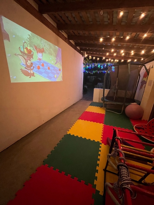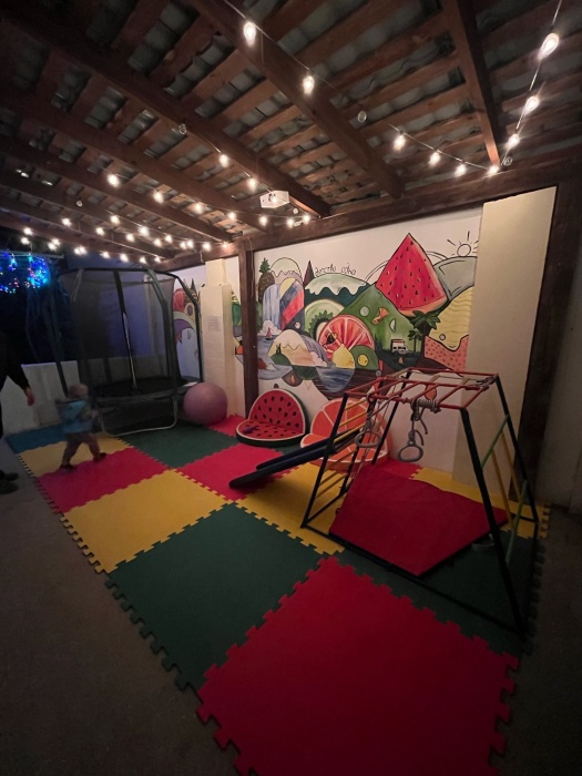 Рядом с гостевым домом: Аквапарк - 300 м, парк Фрунзе, где есть увеселительные заведения - 500 м, парк аттракционов, аквариум, дельфинарий - 300 м, столовые, кафе, рестораны, бутики, магазины - 300 м. Городской театр - 800 м. Есть боулинг, динопарк, фонтаны, кинотеатр, соленая комната, массажный кабинет. Все эти заведения по дороге к морю, но в нашем дворе тихо. От нас 3 остановки до озера Мойнаки, там лечебная грязь-целительная, рядом есть тихая улочка с детскими качелями.