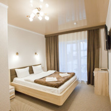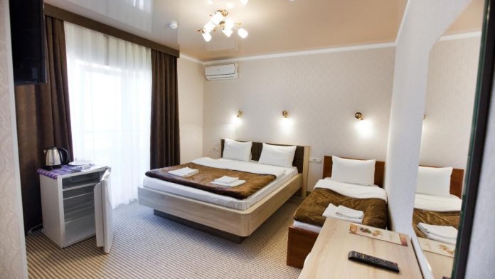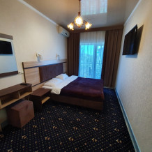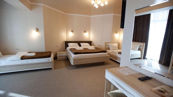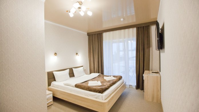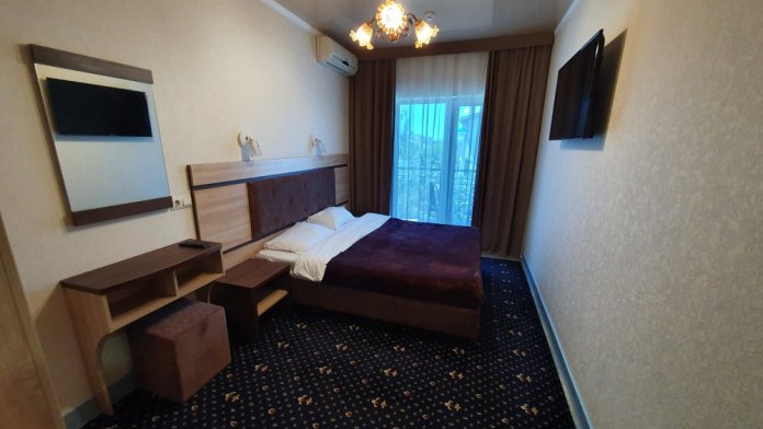 4-х местные номера (25 кв.м) и люксы двухкомнатные 4-х и 5-и местные (30 кв.м), в каждом из которых имеется холодильник, электрочайник, фен, два полотенца на каждого, кондиционер, спутниковое ТВ, Wi-Fi доступ в интернет , сейф, душ, умывальник, туалет.