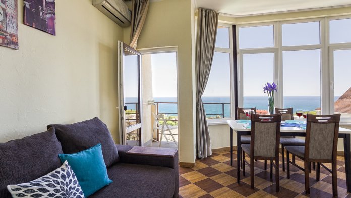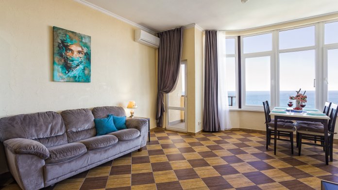 апартаменты с просторной гостиной и изолированной спальней. вид на море.