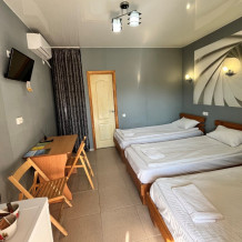 уютный трехместный номер со всеми удобствами. В номере находятся кровати с ортопедическим матрасами и качественным постельным бельем, телевизор, холодильник, кондиционер, чайник, фен. В душевой комнате находится новая сантехника и туалетные принадлежности. Бесплатный WI-Fi.