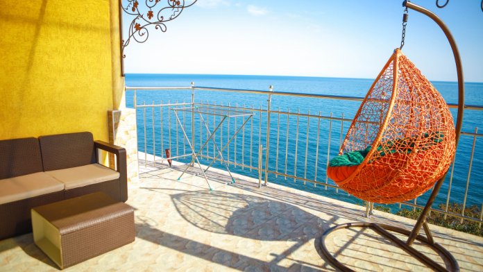 Великолепно оборудованные номер с большой террасой 10 кв.м. на 5 этаже с видом на море. В номере большая двуспальная кровать и одноместная кресло кровать, большой телевизор, чайник, шкаф для одежды, кондиционер, посуда, кресло качалка а также мебель из ротанга. Ванная комната с душем и круглосуточной горячей и холодной водой. Панорамный вид на море и местную природу.