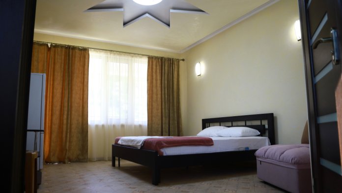 Номер с открытым балконом. В номере двуспальная кровать, раскладное-кресло кровать, телевизор, чайник, холодильник, кондиционер, столовые приборы, шкаф для одежды, Ванная комната с душем, горячая и холодная вода круглосуточно. Вид на горы.